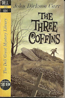 One of the points made in Fell’s lecture is that readers are often disappointed when a really intriguing locked-room mystery turns out to have a simple explanation. There’s no need to worry about that in the case of The Three Coffins - the solution is fiendishly complex. But does it actually work? It was certainly a gamble on Carr’s part - one false step and the whole edifice of the plot would have come crashing down around his ears. I think he gets away with it, although it’s a close-run thing. Which in some ways makes the book even more impressive, since Carr was challenging himself as well as the reader. You get the feeling that Carr loved writing puzzle-plot detective fiction not because it was easy (as so many foolish critics then and now seem to think) but because it was something that was exceptionally difficult to do well.